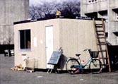 1998 年 1 月 30 日から 3 日間、9 時から 7 時の間に行なわれた武蔵野美術大学卒業製作展で僕は自分の彫刻や絵画作品を展示する空間も作品化することを考え二つの要素を実行しようと思いました。一つは、美術大学卒業製作展という制度から独立した展覧会の中の小さな展覧会をすることで、これは 1 月 27 日から 6 日間 24 時間、学校の中にプレハブを建ててその中で展覧会を開催することで実現しました (建物は僕がそこで生活することで管理しました)。二つめは、ピロティなど建築物の隙間に建築物を建てる。これは安全面などで学校側から許可がおりず実現できませんでした。